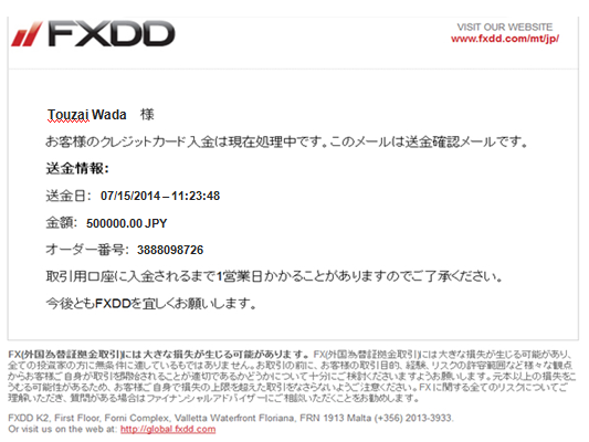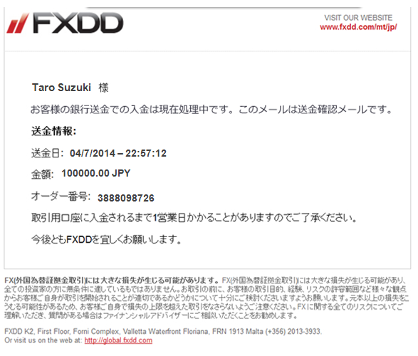 FXDDは、円や米ドル建て口座への海外送金手数料を負担するために、お客様に補填させていただく