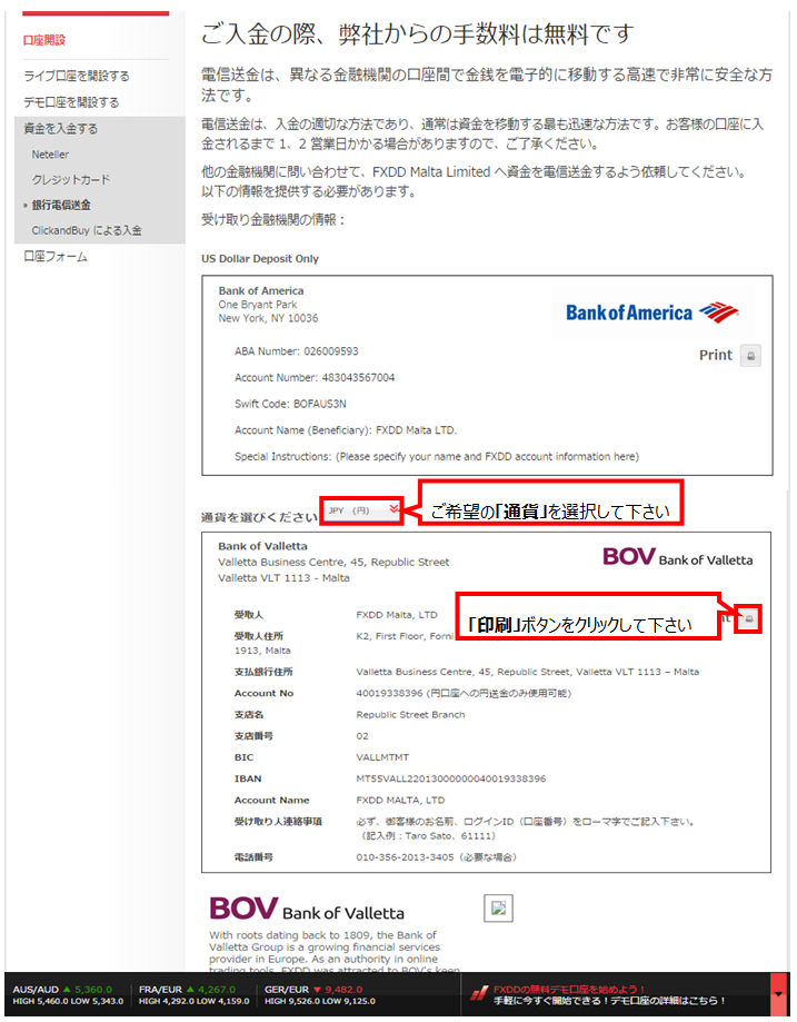 (4)FXDDは、円や米ドル建て口座への海外送金手数料の負担いたします。