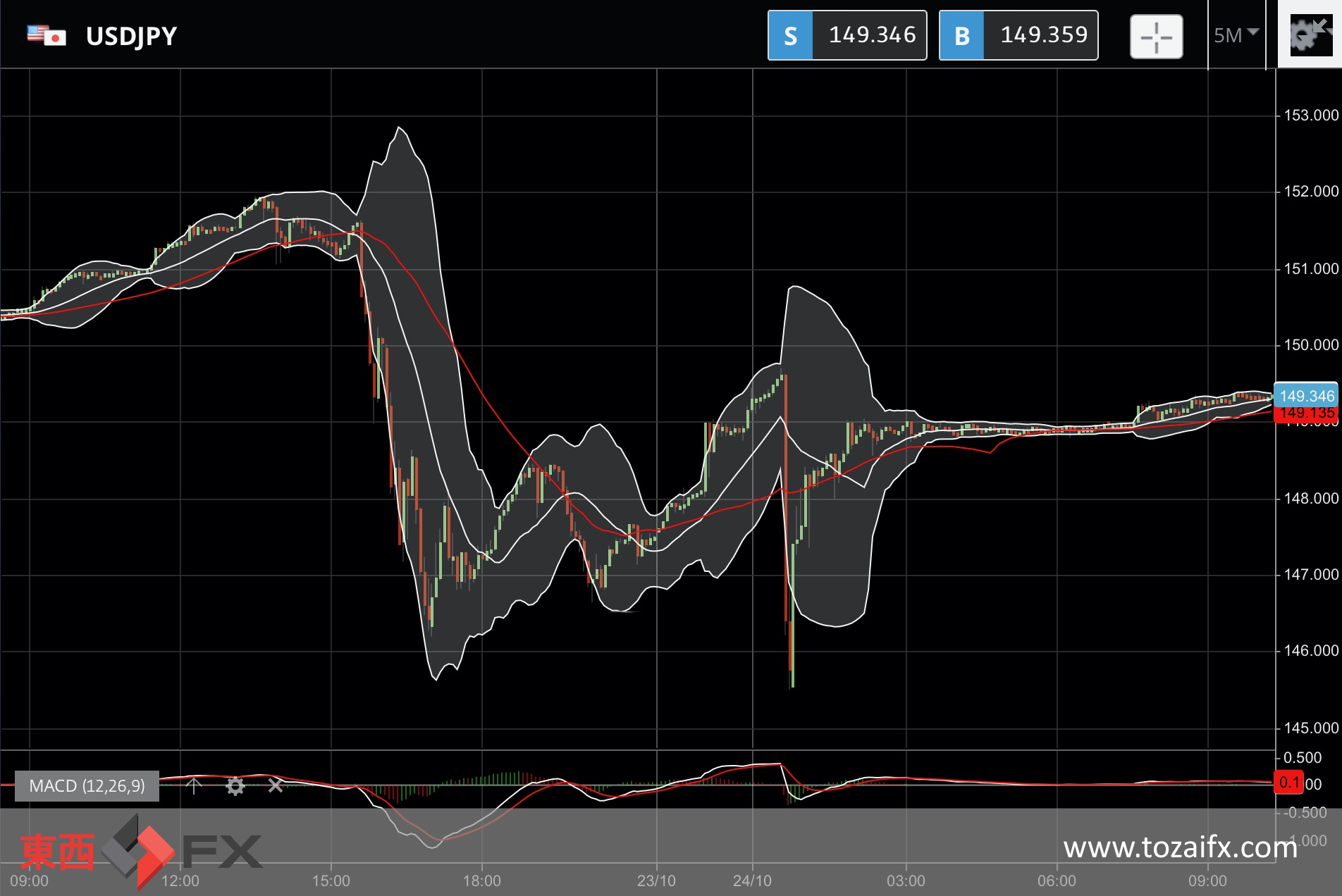 為替介入の影響でドル円が一時151円94銭から144円50銭付近にも、米長期金利が一時4.335%台の2007年以来の高水準を記録後に、米経済紙の米利上げ幅の今後の縮小協議案予に関する報道も影響、ドル売り円買いの再介入後の一時円高の影響が対ユーロにも波及