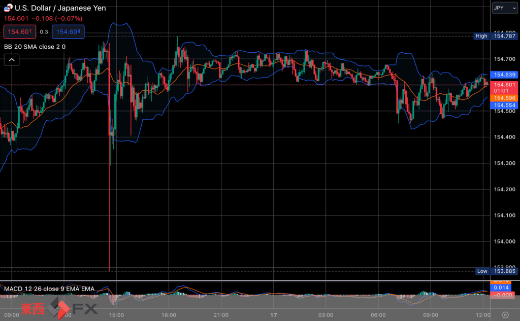 | ドル/円 | 154.61 〜 154.63 | +0.22 (円安) |