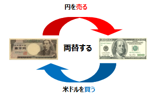 上の例では、米ドルと引き換えに円が売られます。このお金を両替する際、「為替レート」についてもよく理解する必要があります。