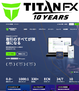 Titan FX(タイタン FX)は、次世代のインフラ、バックオフィス、業界最低水準スプレッドと迅速な取引執行がある安全性の高い取引環境を誇るプロトレーダーに適した技術主導のブローカー!レバレッジが最大500倍で取引可能、豊富な入出金方法、業界最低水準ECNスプレッド(0銭/0ピップ〜)、ゼロカット方式、マイナス残高保護(追証請求がない)、ご満足頂ける24時間日本語サポートを提供します。