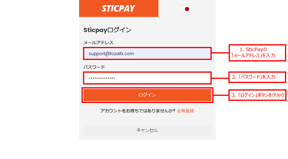 ※ STICPAY(スティックペイ)の口座をお持ちでない場合は、こちらからお申込みください